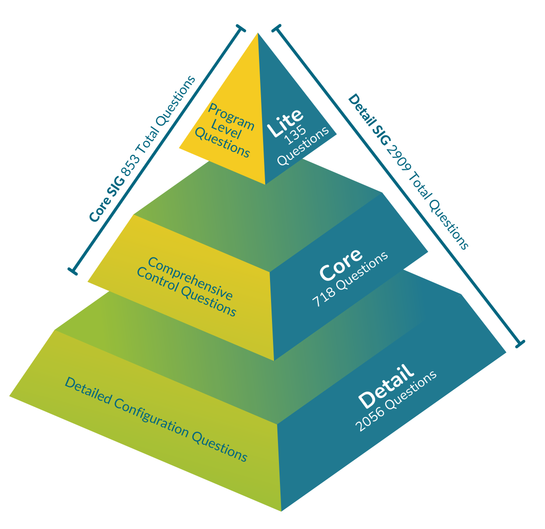 The SIG is a configurable solution enabling the scoping of diverse third-party risk assessments using a comprehensive set of questions used to assess third-party or vendor risk. The Shared Assessments SIG was created leveraging the collective intelligence and experience of our vast and diverse member base. It is updated every year in order to keep up with the ever-changing risk environment and priorities.